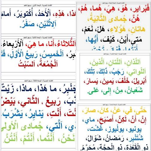 لائحة الكلمات البصرية الخاصة بمرجع مرشدي في اللغة العربية المستوى الثالث موقع الأساتذة والتلاميذ للتعليم عن بعد