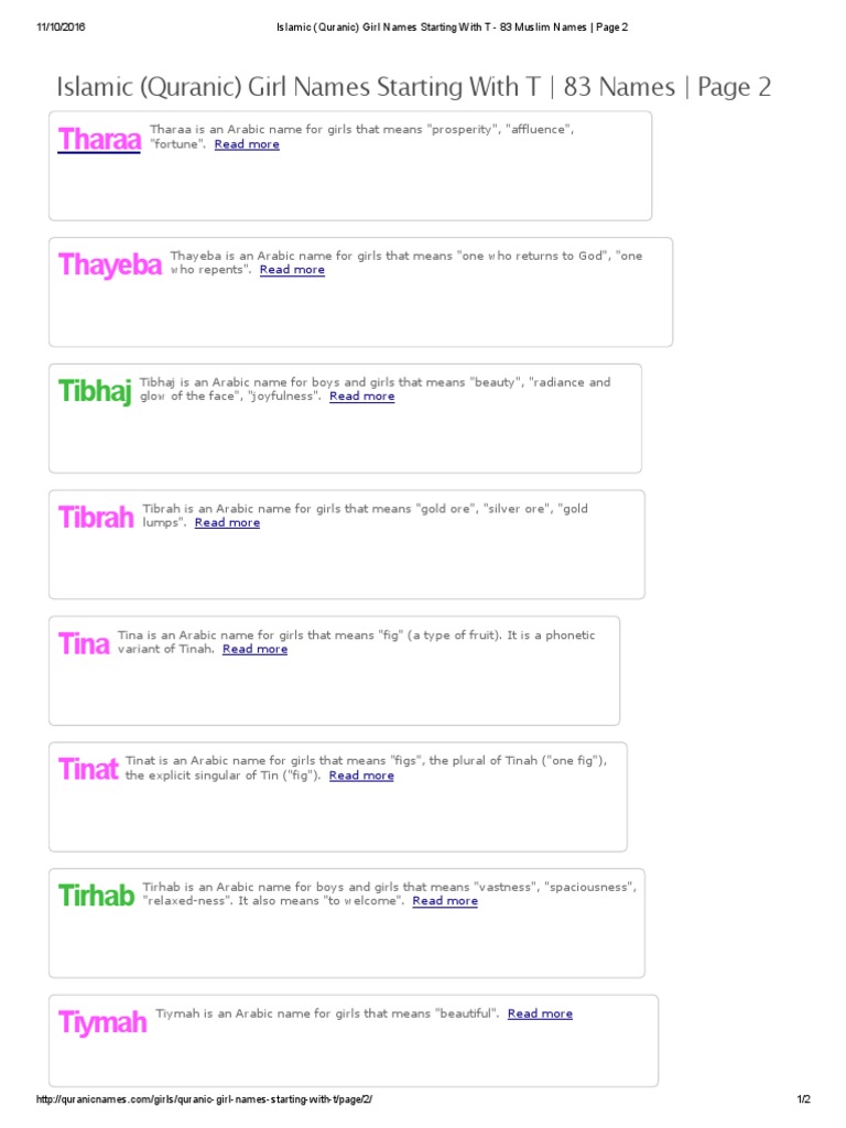 Islamic Quranic Girl Names Starting With T 83 Muslim Names Page 2 Arabic Quran
